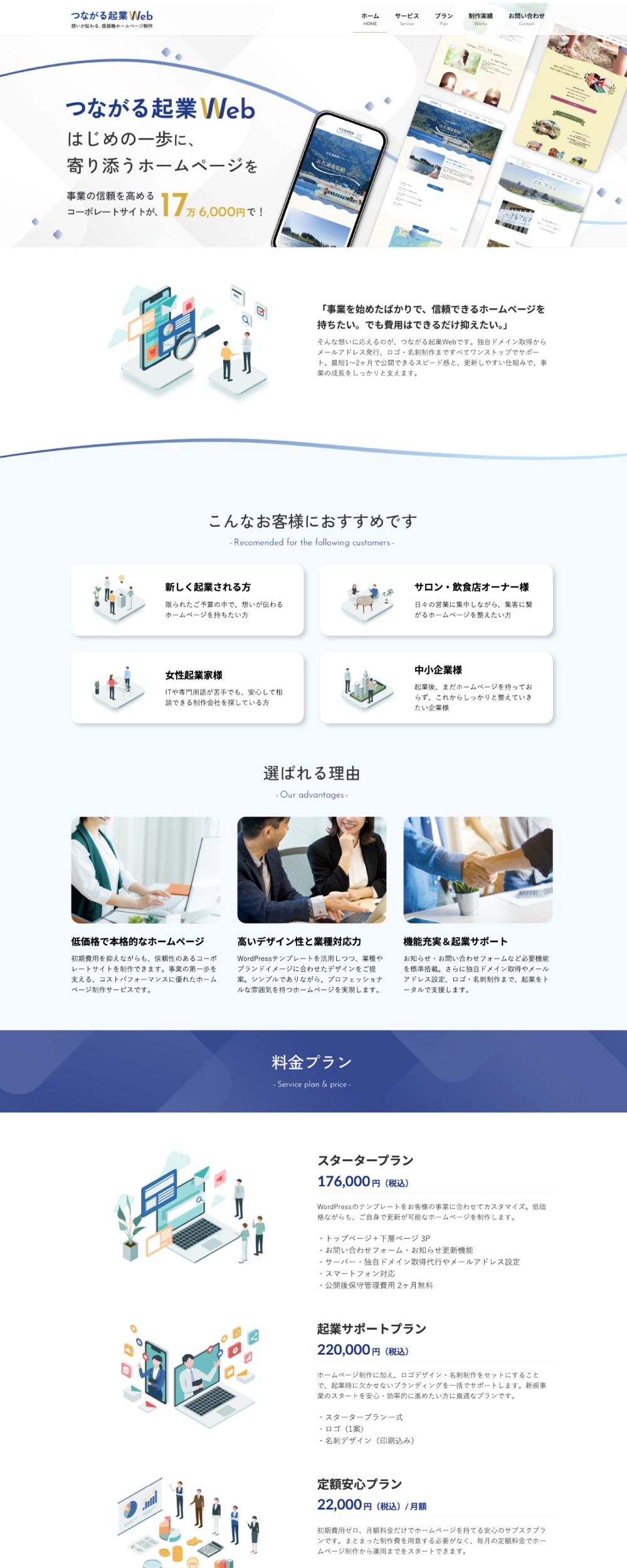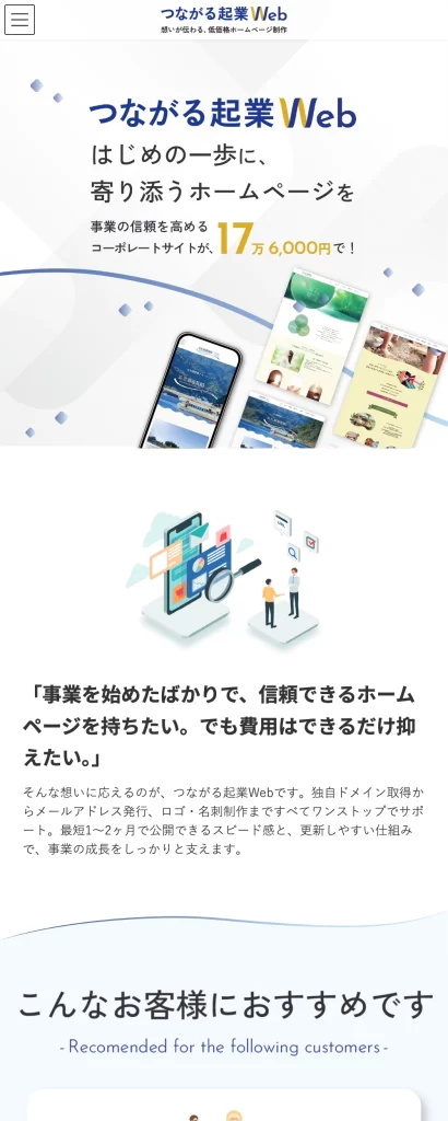 本サービスは、起業・開業間もない方に向けて、無理のない形で“伝わるホームページ”を持っていただくことを目的としたホームページ制作サービスです。