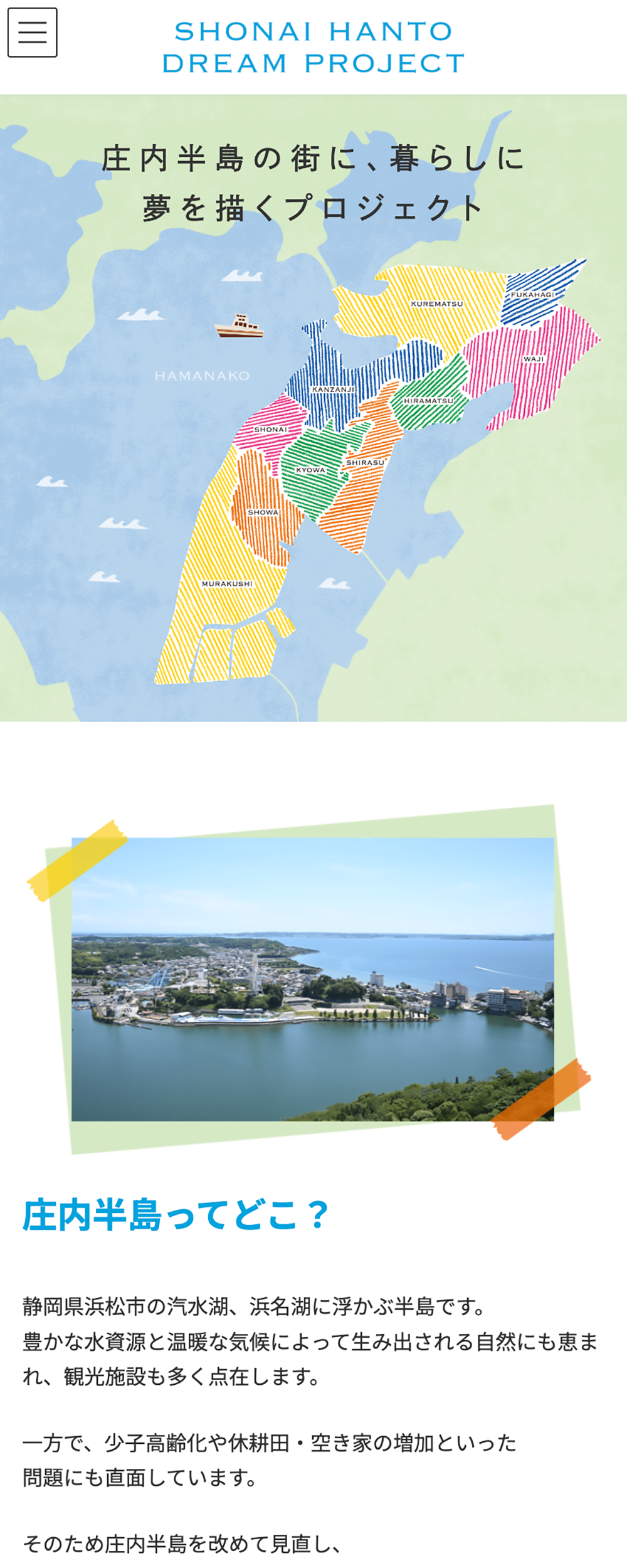 静岡県浜松市にある庄内半島に夢を描くプロジェクト、庄内半島ドリームプロジェクト様のホームページを制作させていただきました。