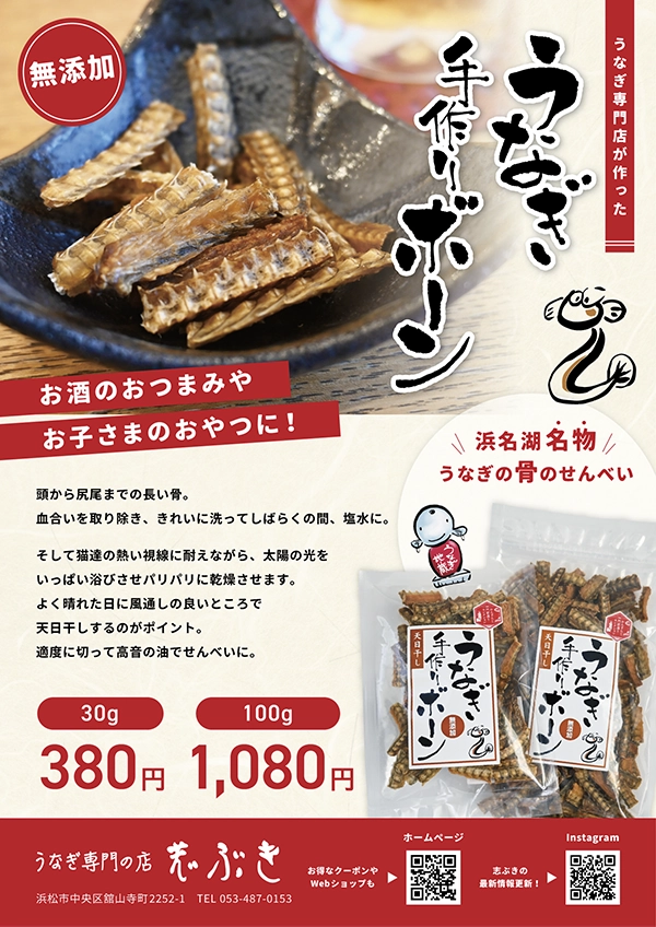 ご紹介したのは、無添加・手作りの「うなぎボーン」。パリパリ食感がクセになる人気商品で、そのおいしさと安心感がしっかり伝わるよう、キャッチコピーや写真の見せ方にもこだわりました。
